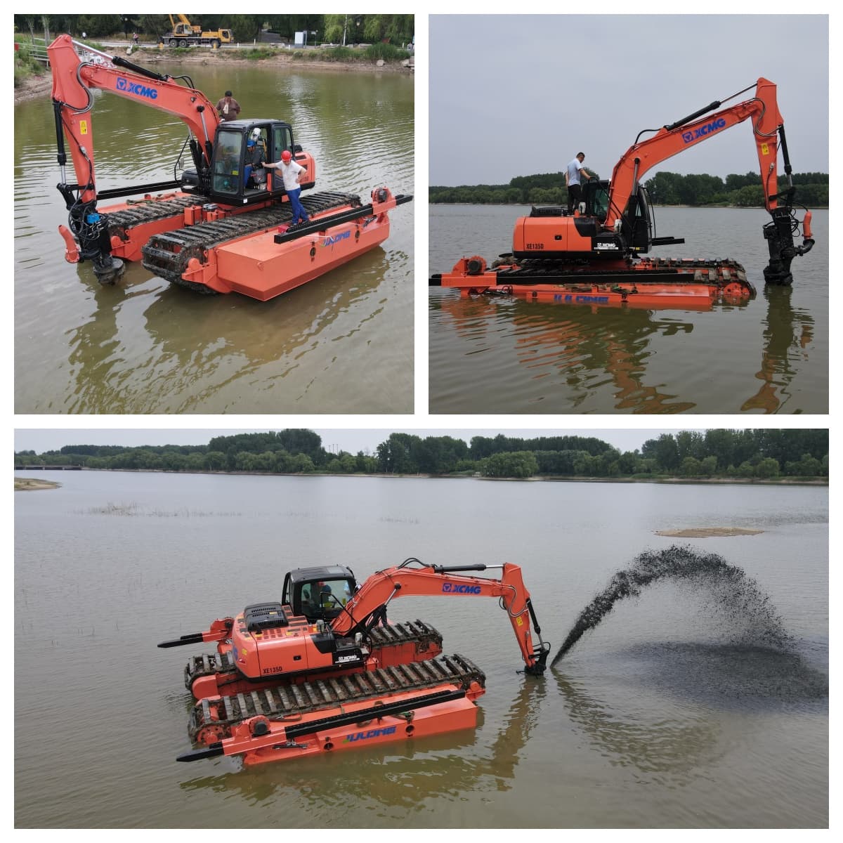 JuLong Escavadeiras anfíbias As escavadeiras anfíbias JuLong são multifuncionais e utilizadas em terra, águas rasas, pântanos e águas profundas. Após anos de testes práticos, a escavadeira anfíbia JuLong conquistou o reconhecimento e a confiança da maioria dos usuários. A estrutura da parte superior permite a escolha da marca da escavadeira e de qualquer tipo de máquina que você precise. Diversos tipos de tanques de flutuação foram projetados e amplamente utilizados, podendo ser adaptados a escavadeiras de 5 a 40 toneladas, e também podem ser personalizados de acordo com as suas condições e requisitos de trabalho, seguindo um projeto exclusivo.